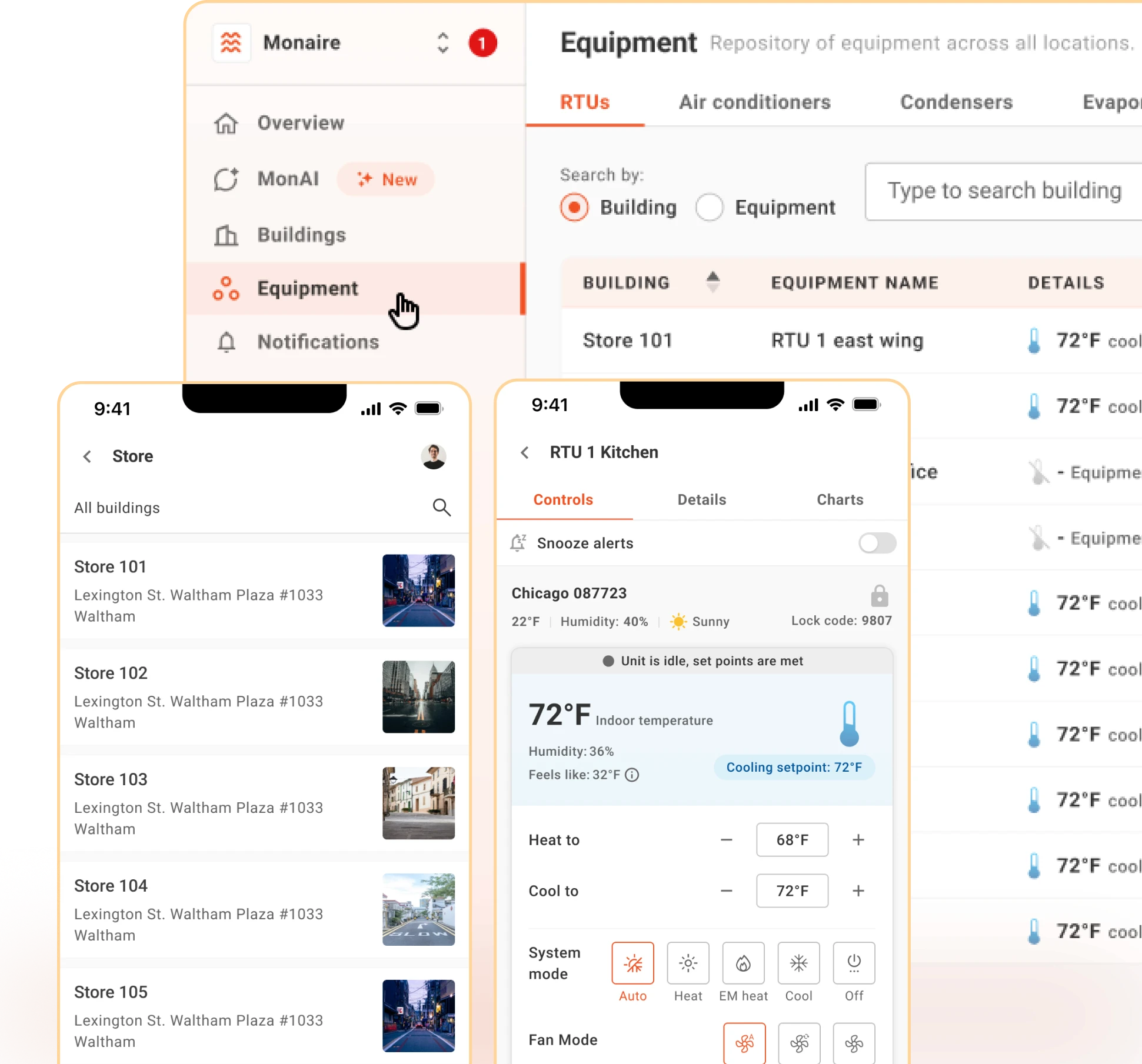 Monaire automates building systems to cut costs across your entire building portfolio. Plus, our intuitive interface makes it easy to see, track, and verify your savings with every sensor and control