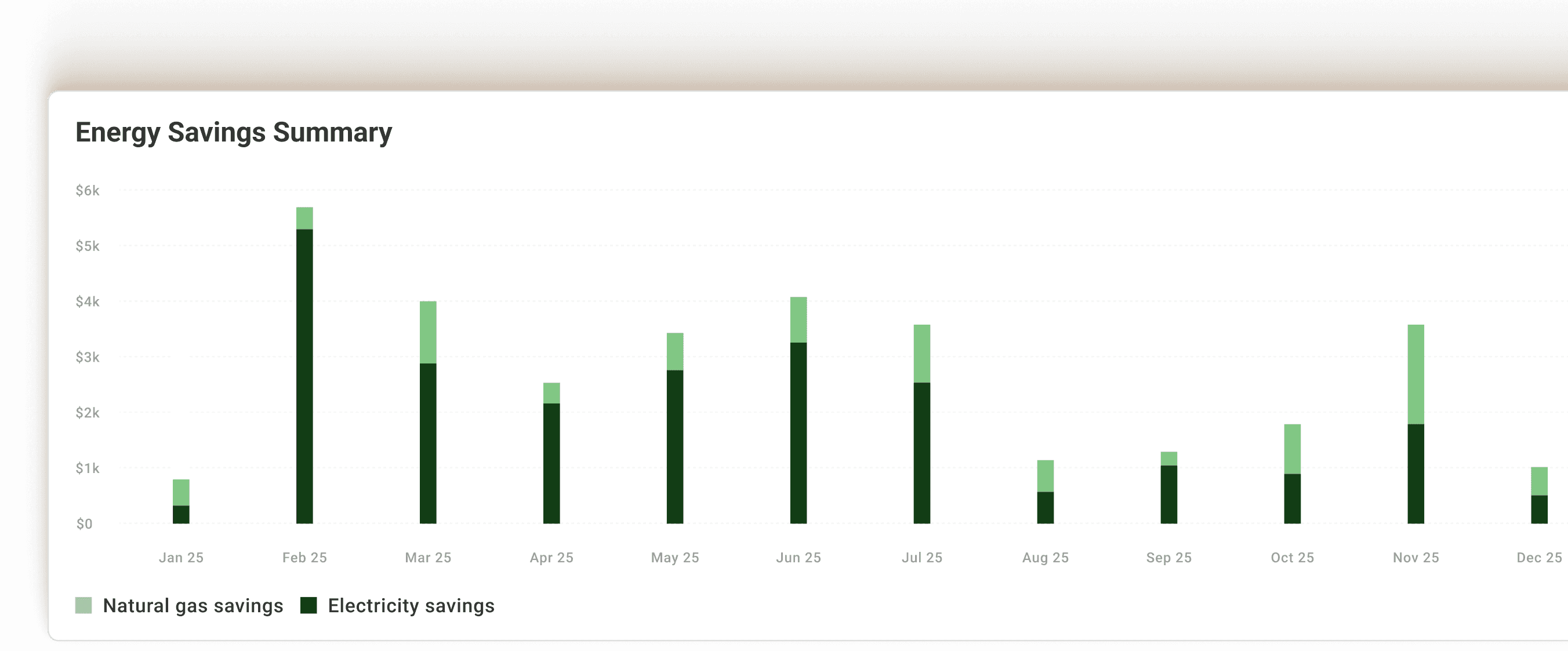 Monaire integrates directly with utility bills to baseline usage and calculate actual savings across your portfolio.