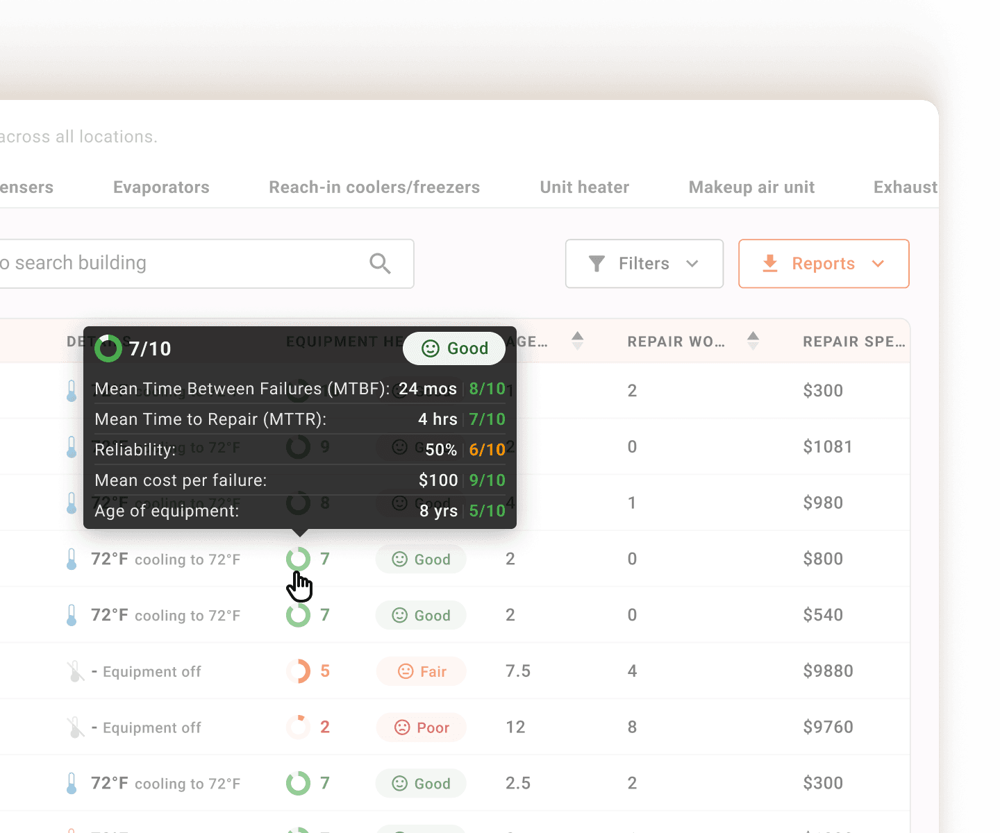 Monaire analyzes equipment performance and recommends when to repair or replace assets based on actual data.